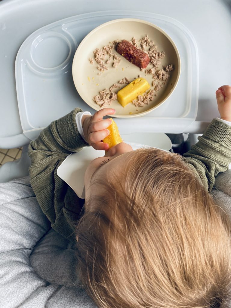 Le concept n’est pas mal. Ma première impression quand il l’a eu en main ? C’est moelleux, il ne faut pas avoir peur qu’il en mette partout. Il le mange facilement. Cela lui fait exercer la motricité fine et de manger de manière autonome également. Je lui mets dans son assiette un peu de viande ou de poisson mixé, comme les portions de chez Yooji. C’est très pratique quand nous n’avons pas le temps de cuisiner ou faire des bâtonnets maison.