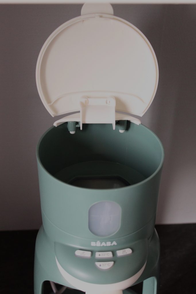 Après avoir consulté plusieurs types de préparateurs de biberon comme le Milkeo de chez Béaba, mon choix s’est porté sur le Bib’expresso de cette même marque.